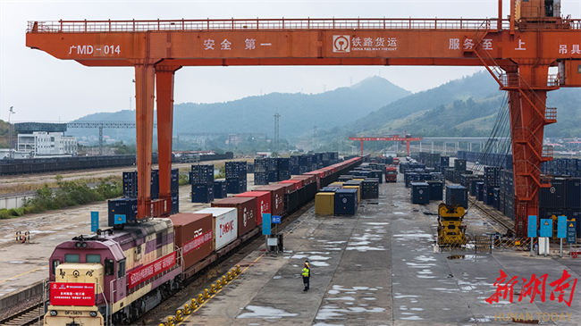 The Yongzhou Land Port is a key logistics hub linking southern Hunan and the Guangdong-Hong Kong-Macao Greater Bay Area. Since 2022, this port has operated a number of special trains for dedicated industries, injecting new momentum into regional economic development. (Photo/Lei Zhongxiang and Jiang Lingzhi)