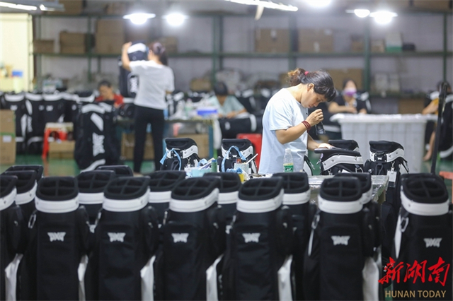 On October 9, workers go all out to process sportswear on the production lines of a sports goods company in Longhui High-Tech Industrial Development Zone. Following the end of the National Day and Mid-Autumn Festival holiday, enterprises across Longhui County have ramped up production for the fourth quarter. (Photo/Zeng Yong and Ning Qifeng)