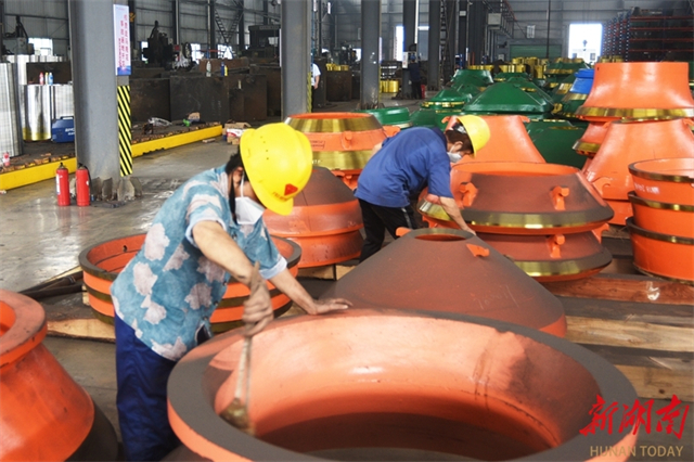 On October 9, workers produce wire rod at full capacity on the production lines at the workshop of an auto parts company in Longhui High-Tech Industrial Development Zone. Following the end of the National Day and Mid-Autumn Festival holiday, enterprises across Longhui County have ramped up production for the fourth quarter. (Photo/Zeng Yong and Ning Qifeng)