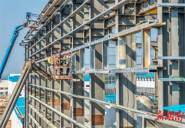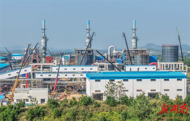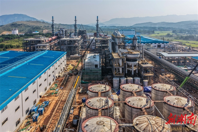 Workers are busy installing equipment and setting up factory buildings at the construction site of a lithium carbonate project of a lithium polymetallic new materials company in Gongba Town, Daoxian County on October 11. With an annual production capacity of 60,000-tonne lithium carbonate, this project has entered the crunch time for equipment installation and plant construction. The workers are racing against the clock to secure construction progress, laying a solid foundation for commissioning test run and production. (Photo/Jiang Keqing)