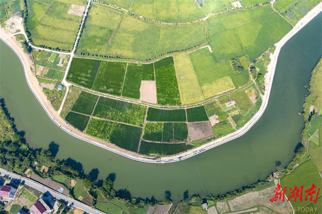 In recent years, the Lianyuan City Authority has focused on river ecological management, advancing a series of measures such as promoting ecological restoration, improving water quality, and fostering shared benefits for residents. These efforts have created an ecological environment characterized by "smooth rivers, clear waters, and beautiful scenery." The photo shows a view of clear waters and green riverbanks along the Sunshui River in Jinpen Village, Yangshi Town, Lianyuan City. (Photo/Wu Yonghua)