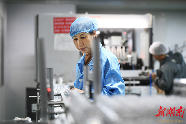 The photo, taken on October 23, shows a worker processing plastic products orderly at a production workshop of Hunan Baosheng Plastics Technology Development Co., Ltd. in Dongyang Town, Liuyang City. Having been deeply rooted in Liuyang for 31 years, the company has grown into an enterprise integrating design, research and development, manufacturing, and sales. The plastic packaging industrial cluster in Dongyang Town has taken shape. A total of 41 related enterprises have gathered here, including three with annual output values exceeding 100 million CNY, demonstrating strong development momentum. (Photo/Tian Chao and Wang Wen, Hunan Daily)