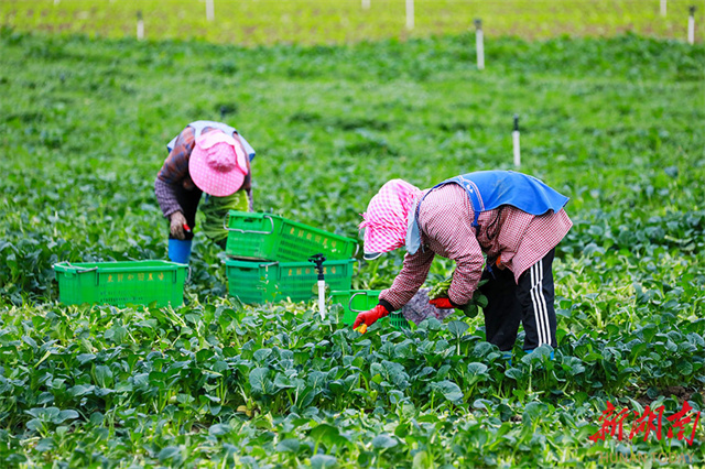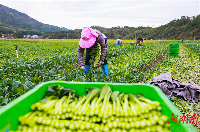 The photo, taken on November 10, shows villagers harvesting vegetables to meet market demand of the Guangdong-Hong Kong-Macao Greater Bay Area. In recent years, the local authority has leveraged its selenium-rich resources and geographical advantages to develop a vegetable supply base for the Greater Bay Area, boosting agricultural efficiency and increasing farmers' incomes. (Photo/Liu Guixiong)