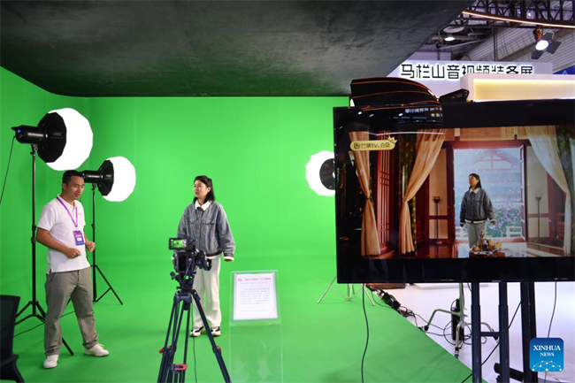 Exhibitors introduce filming devices during the 2025 China New Media Technology Exhibition in Changsha, capital of central China's Hunan Province, Nov. 12, 2025. The 2025 China New Media Conference, featuring an opening ceremony, 7 parallel forums, China New Media Technology Exhibition and 5 other events, kicked off here on Wednesday. (Xinhua/Chen Zhenhai)