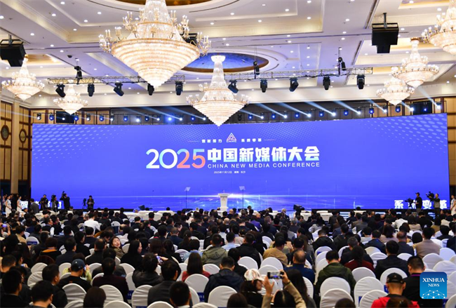 This photo taken on Nov. 12, 2025 shows the opening ceremony of the 2025 China New Media Conference in Changsha, capital of central China's Hunan Province. The 2025 China New Media Conference, featuring an opening ceremony, 7 parallel forums, China New Media Technology Exhibition and 5 other events, kicked off here on Wednesday. (Xinhua/Chen Zhenhai)