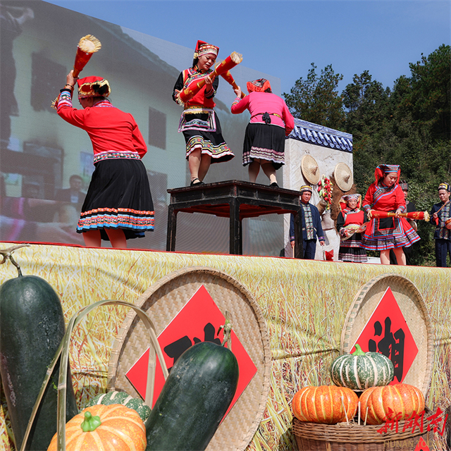 On November 17, a long drum dance troupe staged a show in Taoyuanping Village, Xishan Yao Township, Linwu County, Chenzhou City. The township authority held a folk event to celebrate a bumper harvest, showcasing the new look of the Yao ethnic township and the joy of the harvest through cultural performances and specialty product exhibitions. (Photo/Chen Weiping)