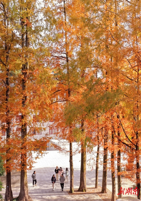 On November 19, the Hengshan Mountain Scenic Area in Hengyang City has been decorated with vibrant hues in the early winter season. The colorful foliage drapes the mountains in a dazzling tapestry, drawing crowds of tourists to admire the scenery and capture photos. (Photo/Cao Zhengping and Wen Lan)