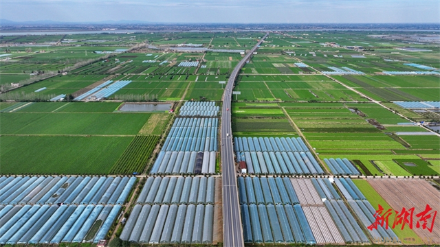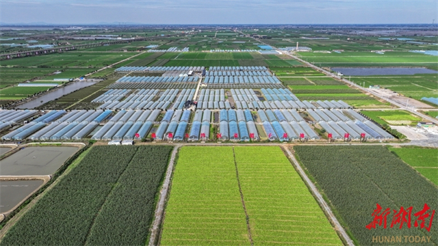 The vegetable fields and greenhouses stretch out in neat rows at Weidi Lake Vegetable Industrial Base in Hanshou County. In recent years, the county authority has further advanced the transformation and upgrading of its vegetable industry, comprehensively aligning with the Vegetable Basket Project or Non-Staple Food Project for the Guangdong-Hong Kong-Macao Greater Bay Area, to build the "Hanshou Vegetables" brand. Currently, Hanshou County maintains a year-round vegetable cultivation area of over 450,000 mu (approximately 30,000 hectares), with an annual output of 1.8 million tonnes and a comprehensive output value exceeding 7.5 billion CNY. This initiative effectively connects plantations directly to consumers, allowing vegetables to reach the market without delay and directly boosting farmers' incomes. (Photo/Guo Liliang and Lu Rongbing, Hunan Daily)