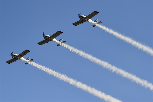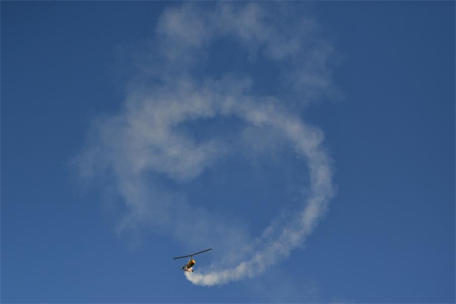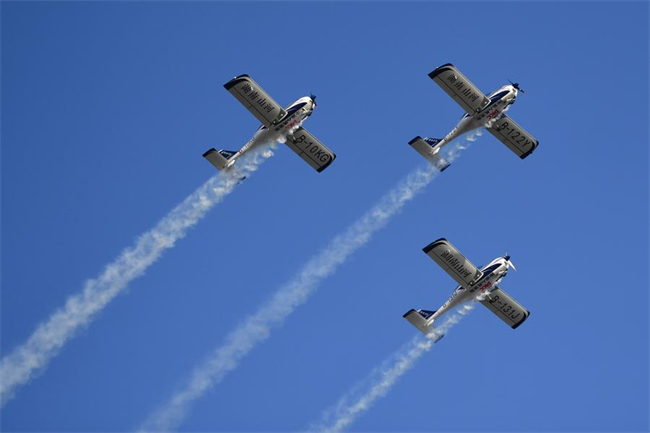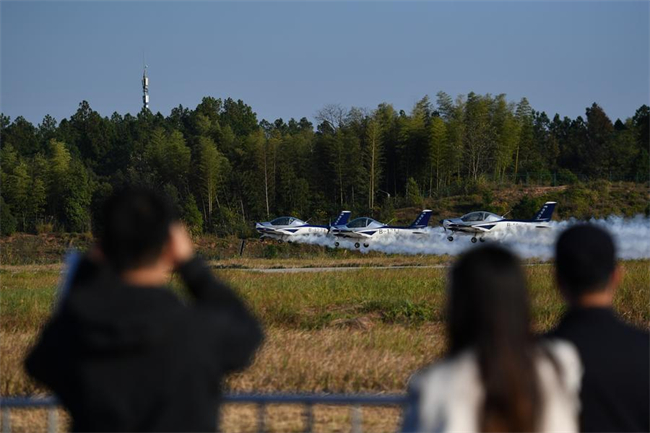 This photo taken on Nov. 21, 2025 shows an air show during the 2025 Hunan International General Aviation and Low Altitude Economy Industry Expo at the Lusong Airport of Zhuzhou City, central China's Hunan Province. (Xinhua/Chen Zhenhai)