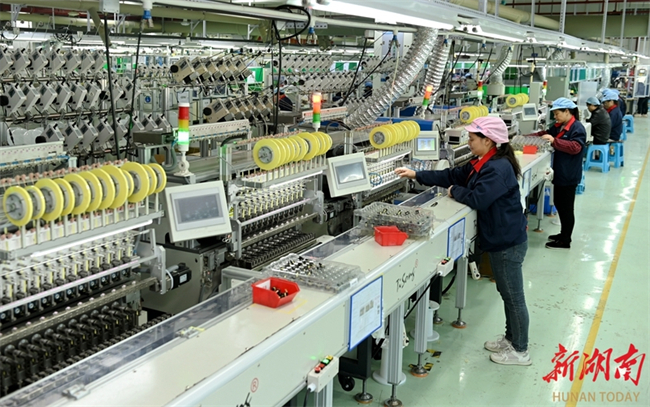 The photo, taken on November 25, shows workers busy producing products for foreign trade orders at an electronics company in Dongkou County. Seeing continuous increase in orders recently, the foreign trade-oriented manufactures across the county are operating at full capacity, making all-out efforts to ensure on-time and high-quality fulfilment of annual production targets, thus boosting the high-quality development of foreign trade economy. (Photo/Teng Zhizhong)