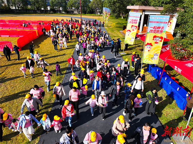 The Hunan Children's Walking Competition kicked off in Anjiang Town, Hongjiang City on November 30. This place, where hybrid rice originated, is known as the "World Capital of Rice." Dressed in pink uniforms, nearly 2,000 children and their parents from more than 800 families, immersed themselves in a journey of golden rice and autumn scenery, which is a feast for both body and soul. (Photo/Zhou Jiachen)