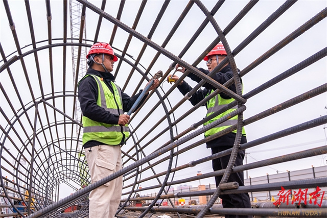 The photo, taken on December 4, shows construction workers undergoing final quality checks on components for the G354 Huangxing Avenue to Airport Central Axis Avenue Section (Xiangfu East Road Extension) Project. The entire project is constructed in accordance with Class I highway specifications, featuring a two-way six-lane main road with a designed speed of 80 km/h. Upon completion, the project will effectively optimize the regional trunk highway network, enhance the traffic capacity and service level of national highways, relieve the transit traffic pressure in Changsha's urban areas, and boost regional economic development. (Photo/Tong Zhenxi and Yu Miao, Hunan Daily)