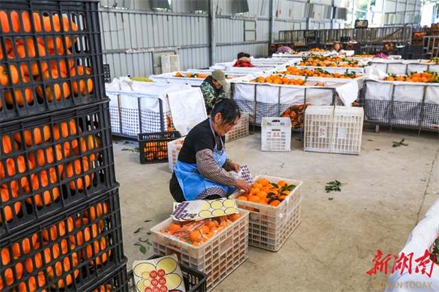 On December 7, fruit farmers were busy delivering Liye navel oranges in Bi'er Village, Liye Town, Longshan County. Taking advantage of the consecutive days of fine weather, local farmers have intensified efforts to harvest, grade, and package Liye navel oranges, ensuring the fresh, high-quality fruit reaches the market promptly. (Photo/Zeng Xianghui)