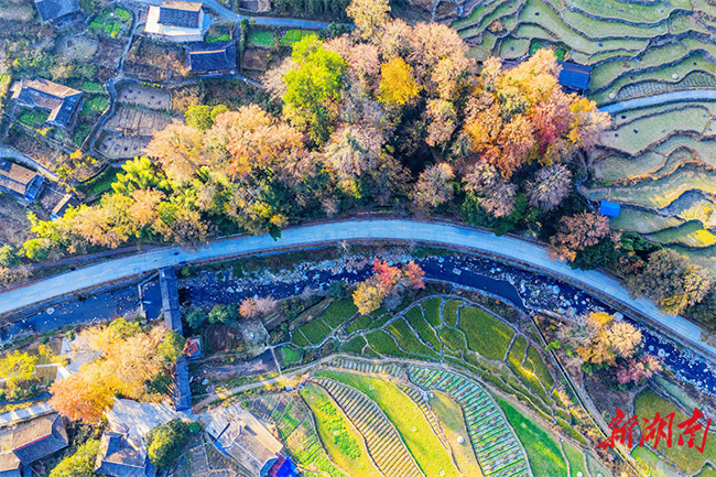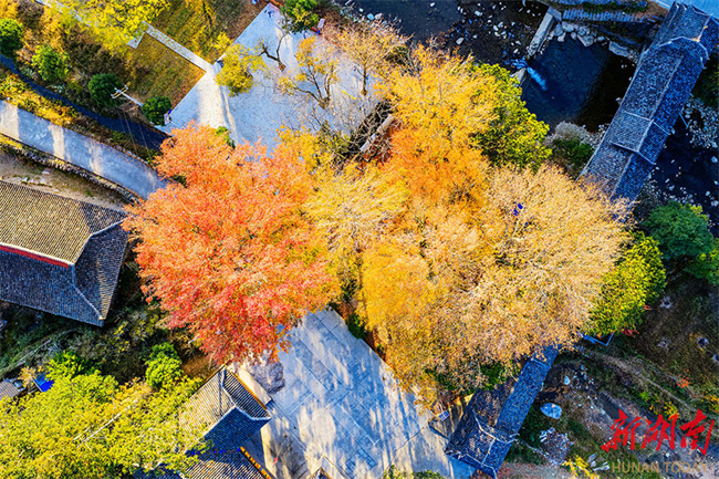 The ancient maple trees in Chang'anying Town, Chengbu Miao Autonomous County has entered prime view period in recent days. The photo, taken on December 15, shows the red and yellow maple leaves glistening under warm winter sunshine, making wood upon wood in a deep dye. (Photo/Shi Menglei)
