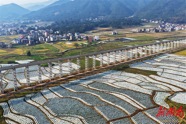 The photo above, taken on December 17, shows idyllic country fields harmoniously blending with irrigation channels and verdant mountains in Maojun Town, Lanshan County. In recent years, the county authority has embraced the philosophy that "lucid waters and lush mountains are invaluable assets." It has achieved a harmonious integration of farmland, waterways, and green mountains through environmental treatment and characteristic agricultural development. This has fostered a vibrant rural revitalization scene conducive to both living and working. (Photo/Huang Chuntao)
