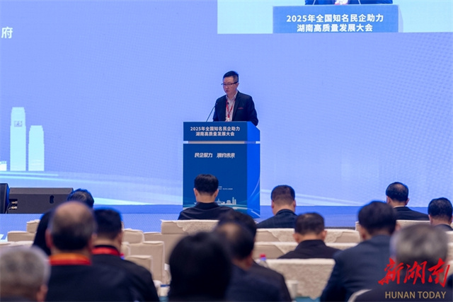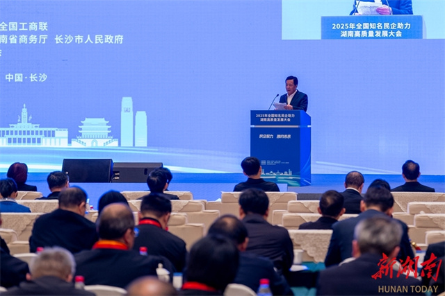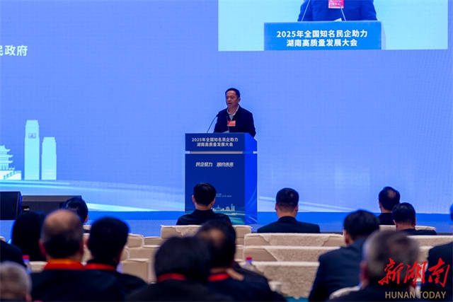 The 2025 Conference on Nationally Well-known Private Enterprises Supporting Hunan's High-Quality Development was held in Changsha on December 22. The conference was jointly hosted by the Hunan Provincial People's Government and the All-China Federation of Industry and Commerce (ACFIC). It served as a window of opportunity for well-known private enterprises across the country to learn about, explore, and invest in Hunan. It also acted as a bridge and bond for local private enterprises in Hunan to broaden their horizons, improve their concepts, and integrate into a broader industrial ecosystem. (Photo/Tong Zhenxi and Yi Ang, Hunan Daily)