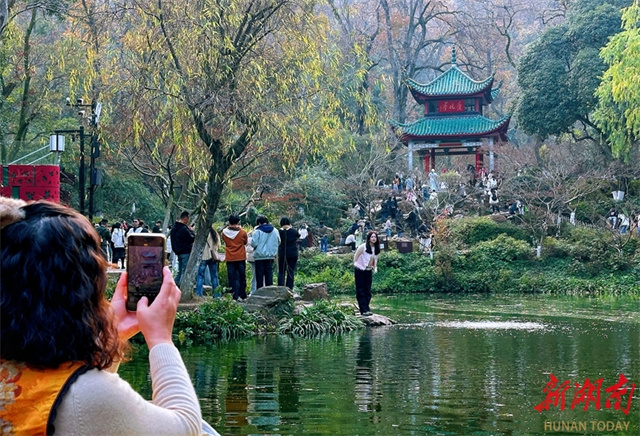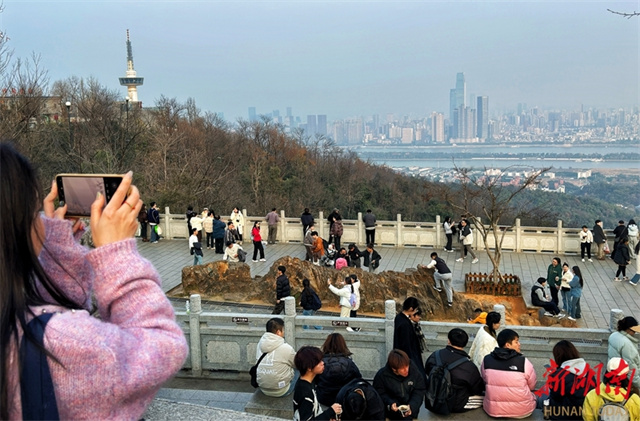 The photo, taken on December 29, shows residents and tourists visiting the Yuelu Mountain Scenic Area in Changsha. Bathed in gentle winter sunshine, the ancient pavilion and buildings, nestled among evergreen pines and cypresses, created a picturesque scene, drawing numerous visitors to climb the mountain and enjoy the scenery. (Photo/Xu Xing, Hunan Daily)