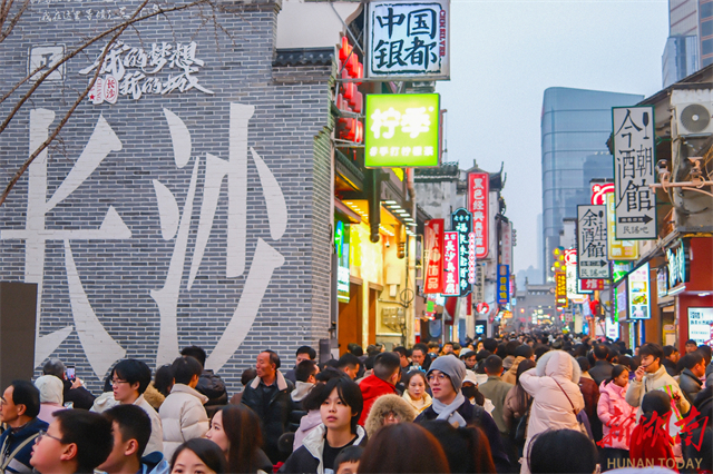 The Wuyi Commercial District of Changsha City bustles with crowds during the New Year's Day holiday. (Photo/Tong Zhenxi, Hunan Daily)