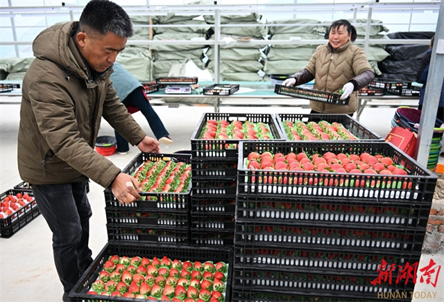 The photo, taken on January 4, shows villagers packing fresh strawberries at Baiyanghu Community in Linzhan Neighborhood, Lixian County. (Photo/Bai Yipu)