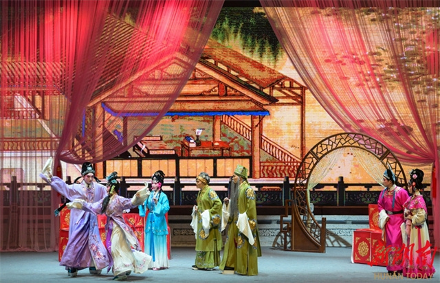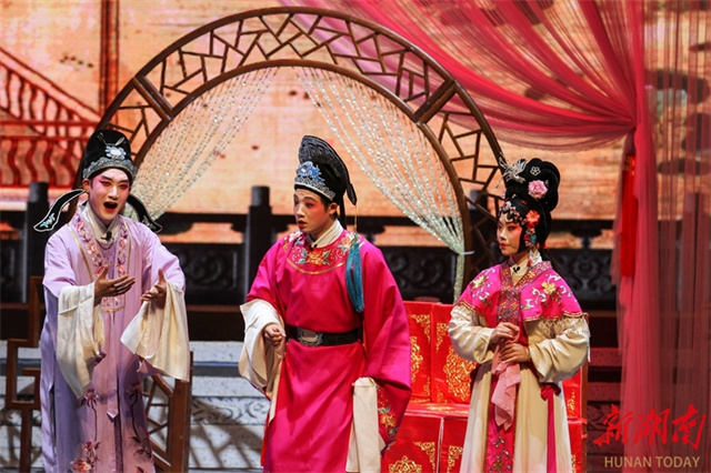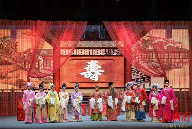 The photo, taken on the evening of January 4, shows artists staging a traditional flower-drum opera performance. That night, the graduation showcase of the five-year Flower-drum Opera Program trainees took place at the Zixing City Theater. The targeted training program is commissioned by Zixing City and undertaken by the Hunan Vocational College of Art. Fifteen flower-drum opera newcomers performed alongside veteran artists from the Zixing City Cultural Center, presenting a classic Flower-drum Opera performance that showcased the unique charm of traditional art and promoted the traditional virtues of loyalty, filial piety, chastity, and righteousness. (Photo/Li Qianghui and He Honghai)
