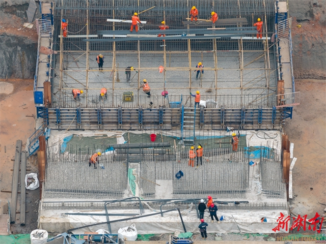 The photo above, taken on January 5, shows a busy scene at the construction site of the Taoyuan Hub Second-line Ship Lock Project on the Yuanshui River. This project is a key water transport construction initiative under Hunan Province's 14th Five-Year Plan. Upon completion, it will help address Hunan's deficiencies in water transport infrastructure, leverage the Yuanshui River's navigational advantages, reduce logistics costs, enhance the overall efficiency of water transport, establish a comprehensive transportation hub system, and boost regional economic development. (Photo/Liang Zhibin)