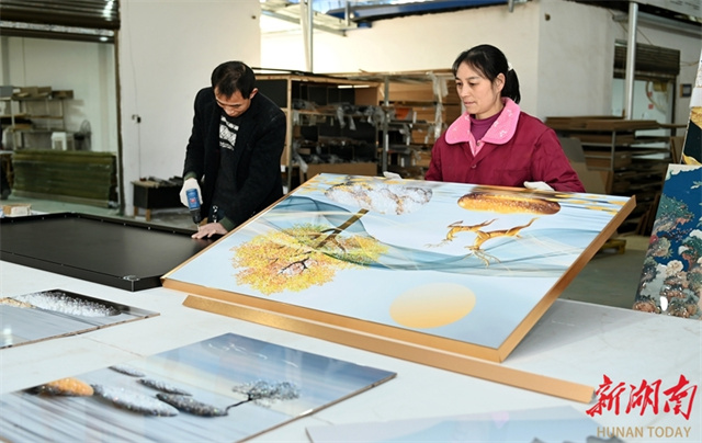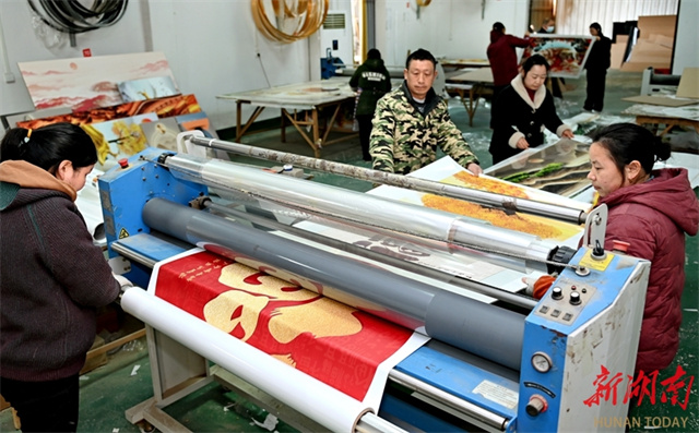 The photo shows workers producing decorative pictures at Huangqiao Town, Dongkou County. Recently, decorative painting enterprises have been ramping up production to fulfill orders for the upcoming Spring Festival, with the aim of ensuring stable market supply. (Photo/Teng Zhizhong)