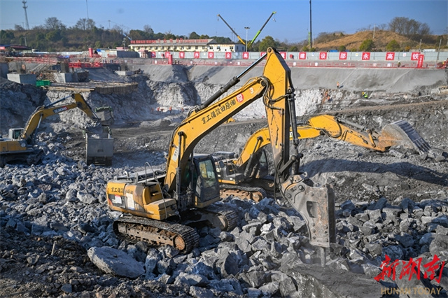 The photo shows construction workers carrying out subgrade construction at the construction site of the Yongzhou Station renovation project for the Shaoyang-Yongzhou Railway. Undertaken by the China Railway Construction Group Co., Ltd., the renovation of Yongzhou Station is a key control project along the Shaoyang-Yongzhou High-Speed Railway. The station capacity will be expanded from 3 platforms with 13 tracks to 6 platforms with 18 tracks. Upon completion, Yongzhou Station will become an integrated transportation hub that integrates the Shaoyang-Yongzhou High-Speed Railway, Hengyang-Liuzhou High-speed Railway, and the planned Guangzhou-Qingyuan-Yongzhou High-Speed Railway, eliminating the high-speed rail bottleneck between southern Hunan and the Guangdong-Hong Kong-Macao Greater Bay Area. (Photo/Guo Liliang, Hunan Daily)