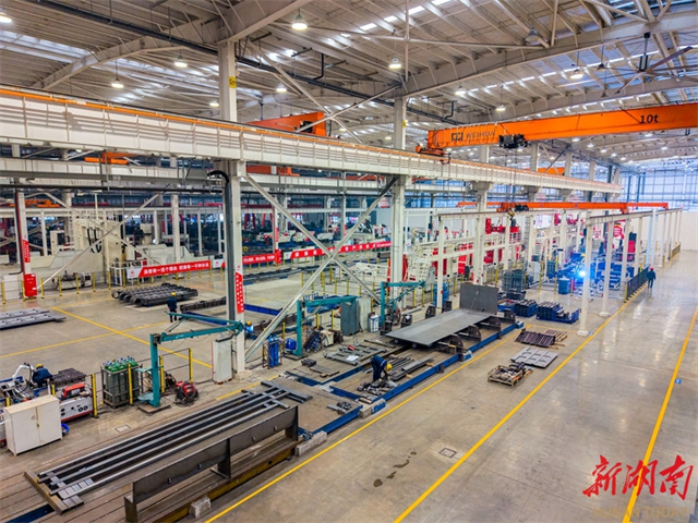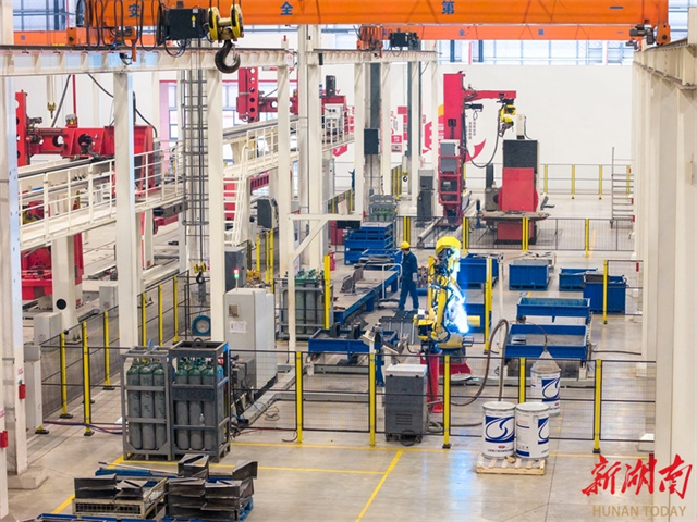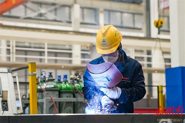 The photo, taken on January 16, shows workers engaging in production at the SANY Construction Technology Miluo Industrial Park.