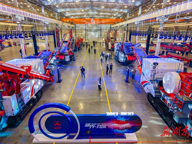 The photo, taken on January 16, shows people visiting the SANY Construction Technology Miluo Industrial Park. On the same day, the "Breaking Limits, Building the Brilliance" 2026 SANY Global Launch of Full-Series Crushing & Recycling Equipment was held in Miluo City. To meet operational demands for flexible relocation, no need for fixed infrastructure and rapid deployment, the company introduced a complete set of mobile crushing and recycling equipment. This equipment can operate individually and support multi-unit coordinated operation, adapting to the requirements of various working conditions. (Photo/Tong Zhenxi and Liu Le, Hunan Daily)