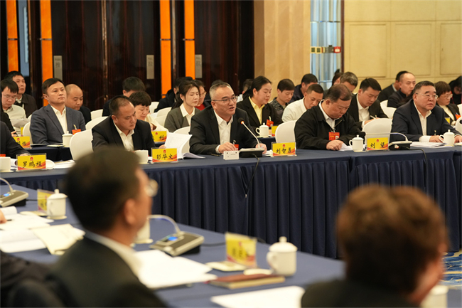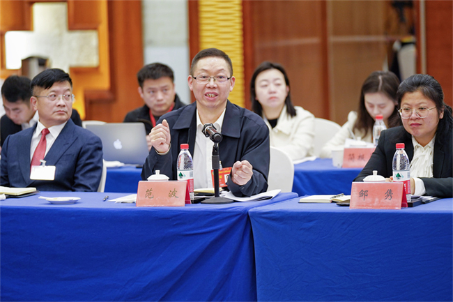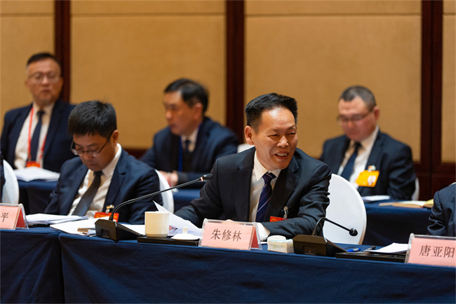 On February 3 afternoon, Zhu Xiulin, a deputy from the Xiangtan delegation, offers his suggestions on advancing Changsha-Zhuzhou-Xiangtan integrated development. (Photo/Fu Cong, Hunan Daily)