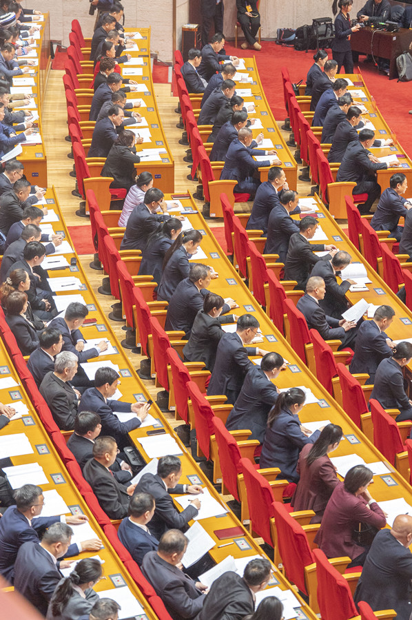 Deputies listen to the work report of the provincial government. (Photo/Tong Zhenxi, Hunan Daily)
