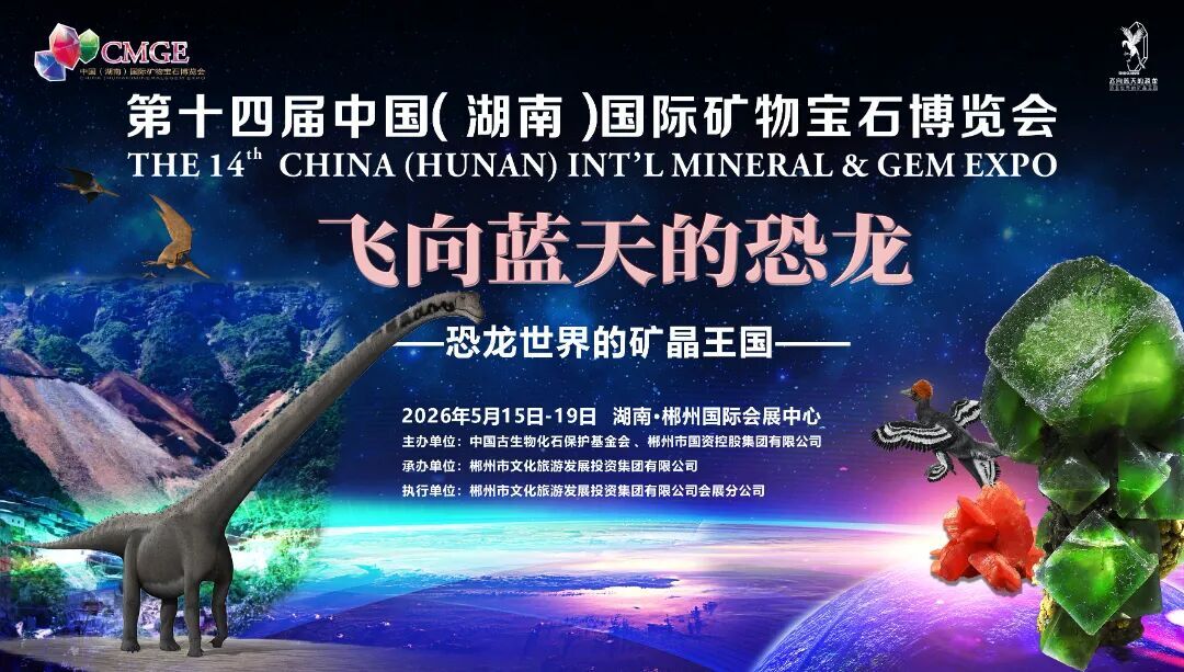 According to the organizers, the 14th CMGE will take place at the Chenzhou International Convention and Exhibition Center from May 15 to 19, 2026, cordially inviting mineral and gemstone enthusiasts worldwide to attend.