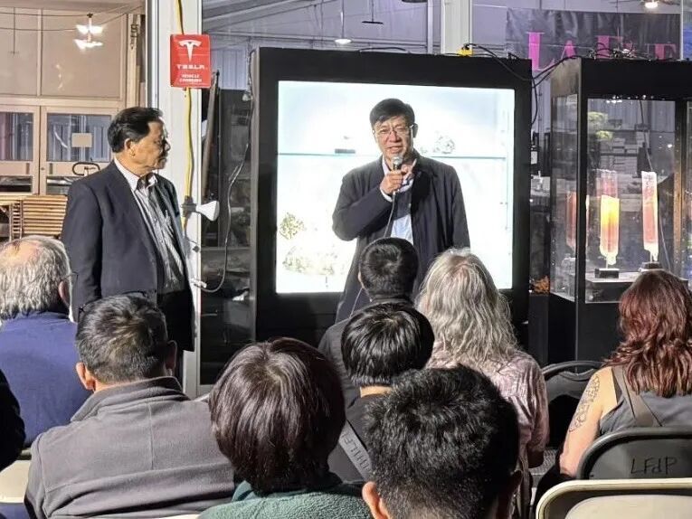 With the theme of "Dinosaurs Soaring to the Blue Sky—The Mineral Kingdom of the Dinosaur World," the event was co-hosted bilingually by Zheng Jianrong and Guo Zhouping, seasoned professionals in the mineral crystal field and pioneers who first promoted Chinese mineral specimens to the international market.