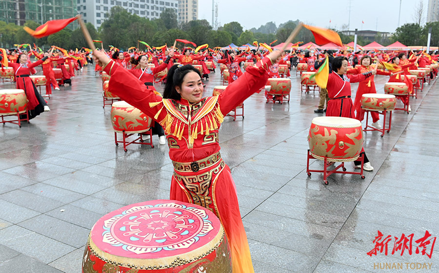 The photo, taken on February 10, shows people staging a drum performance to pray for blessings and welcome Chinese New Year at the Renmin Square in Dongkou County. On the same day, the county hosted a public New Year celebration featuring lively gongs, drums, dragon and lion dances, and folk performances, culminating in a peak of festive joy. (Photo/Teng Zhizhong)