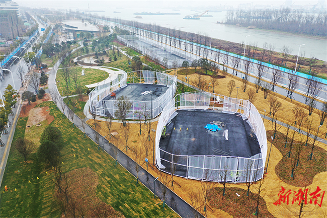 On February 9, construction of the Daze Lake International Talent Park in the Daze Lake area of Wangcheng District, Changsha, enters the final phase. Positioned as a youth-friendly ecological riverside park, it is approximately two kilometers long from north to south and 80 meters wide from east to west. The southern section features a planned island bridge along Nantang Road, providing direct access to the Moon Island. The park is expected to open after the Spring Festival, offering diverse recreational spaces for residents. (Photo/Tian Chao, Hunan Daily)