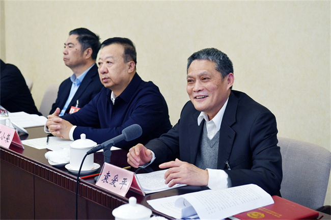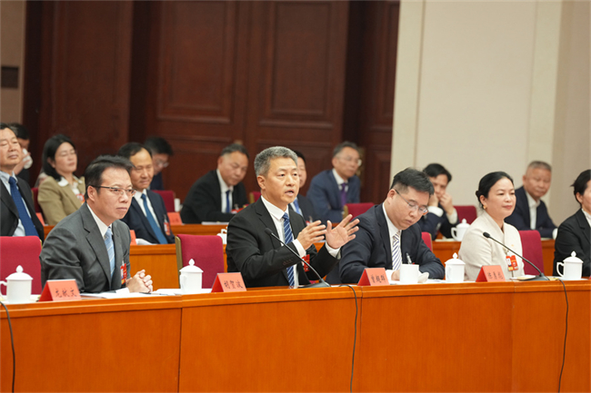 On March 5, Yuan Aiping (1st R), a Hunan-based member of the CPPCC National Committee, made a speech at a group discussion.