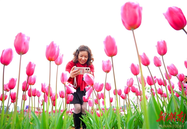 The photo, taken on March 5, shows people taking photos of tulip flowers at Jiaoshan Town, Shigu District, Hengyang City. That day marked the begining of "Jingzhe" or "Awakening of Insects," the third of the 24 solar terms on the Chinese lunar calendar. During this period, canola flowers, tulips, violets, and other spring blooms burst into vibrant colors, drawing crowds of visitors to admire the blossoms, take photos, and immerse in the vibrant spring atmosphere. (Photo/Cao Zhengping and Chen Yi)