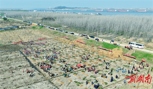 On March 11, the SINOPEC Hunan Company joins hands with Yueyang's Yunxi District to launch a voluntary tree-planting activity at the New Port section of Luchengyuan Embankment along the Yangtze River shoreline, aiming to enhance the beauty of the Yangtze riverbanks together. March 12 marks China's National Tree Planting Day. Voluntary tree-planting activities are being held across the province, to increase green coverage, boost ecological protection, and jointly build a beautiful homeland. (Photo/Peng Zhan and Li Yijun)