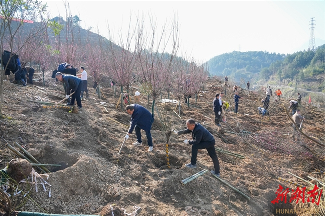 On March 11, officials and villagers take part in a voluntary tree-planting activity at Matuo Village, Zhuquan Town, Jiahe County. March 12 marks China's National Tree Planting Day. Voluntary tree-planting activities are being held across the province, to increase green coverage, boost ecological protection, and jointly build a beautiful homeland. (Photo/Xiang Tao)