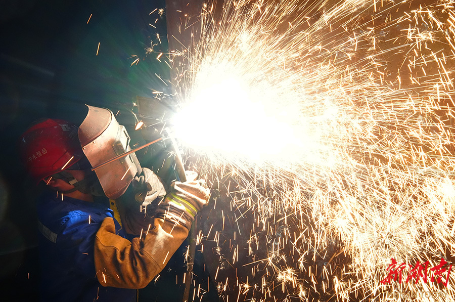 On March 16, technicians of the Hunan Hengyue Heavy Steel Structure Engineering Co., Ltd. processed wind turbine tower components at the Hengshan Economic Development Zone. The company has received sufficient orders after the Spring Festival, representing a robust production momentum with strong demand and supply. Currently, the company is operating at full capacity to strive for a good start in the first quarter. (Photo/Cao Zhengping and Yang Jianqing)