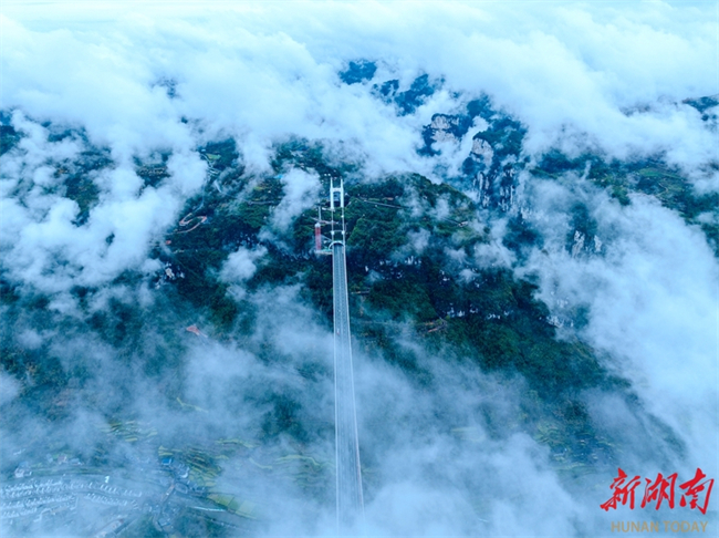 On March 18, the Aizhai Wonder Scenic Area is shrouded in clouds and mist after a rainfall. Aizhai Bridge looms in and out of view amid mist, transforming the landscape into an exquisite "Chinese ink wash painting." (Photo/Peng Jing)