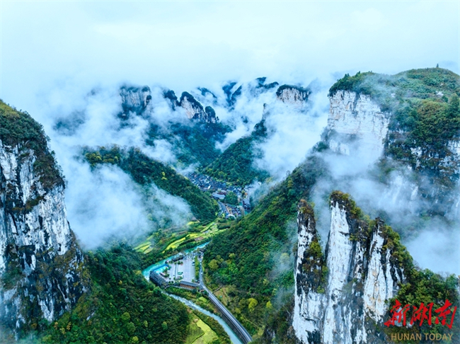 On March 18, the Aizhai Wonder Scenic Area is shrouded in clouds and