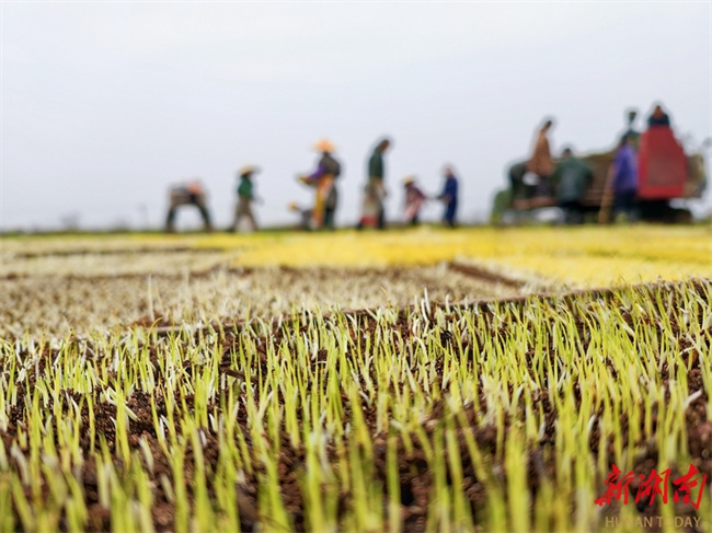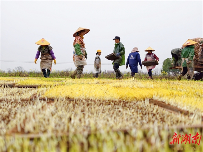 The photo, taken on March 19, shows villagers raising early-season rice seedlings at Mutangyuan Town, Taoyuan County. Spring Equinox, or Chunfen, the fourth solar term in the Chinese lunar calendar, begins on March 20 this year. During this period, farmers across the province are seizing the favorable farming season to engage in agricultural activities, presenting a vibrant picture of farming scene. (Photo/Tong Xianfeng)