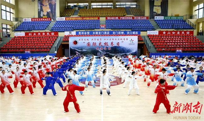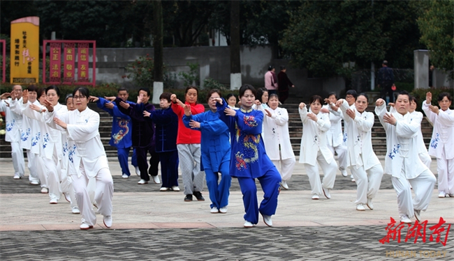 On March 21, Taijiquan enthusiasts participated in a Taijiquan demonstration event at the Cultural and Sports Center of Xintian County. That day marked China's inaugural International Taijiquan Day. Taijiquan demonstration events were held across the province to showcase the unique charm of this Chinese traditional martial art. (Photo/Zhong Weifeng)