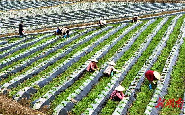 The photo, taken on March 30, shows villagers busy working in the fields in Ximenkou Village, Qianzhou Neighborhood, Jishou City. As temperatures gradually rise, farmers across the province are seizing the farming season to engage in spring farming, presenting a vibrant scene in the fields. (Photo/Liu Zhenjun)