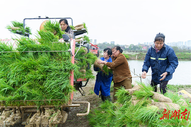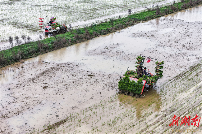 The photo, taken on March 30, shows farmers operating agricultural machines to transplant early-season rice seedlings at Bali Village in Shanglingqiao Town, Yongzhou City. As temperatures gradually rise, farmers across the province are seizing the farming season to engage in spring farming, presenting a vibrant scene in the fields. (Photo/Lei Zhongxiang and Jiang Lingzhi)