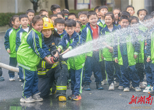 firefighters. That day marked China's national safety education day for middle and primary school students. The Daoxian County Fire and Rescue Brigade invited students from Daoxian County No. 4 Primary School to visit the fire station and participate in safety education activities, aiming to enhance their safety awareness and self-protection skills. (Photo/Jiang Keqing and Wen Tian)