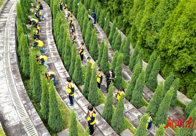 People pay tribute to martyrs at the martyrs' cemetery in Changning, Hengyang, on April 1. As the Tomb-sweeping Day is approaching, people across the province are organizing various forms of memorial activities to commemorate revolutionary martyrs, carrying forward the spirit of heroes and fostering affection for the country. (Photo/Liu Donghua)