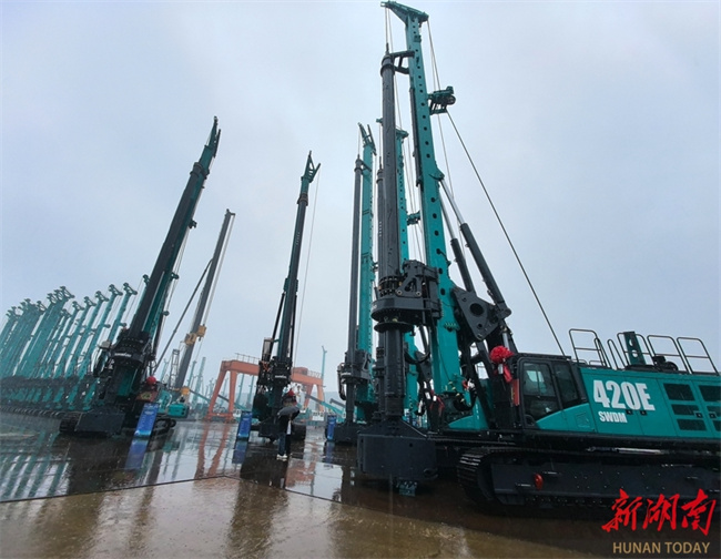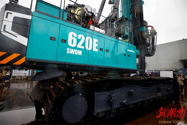 On March 31, Changsha-headquartered Sunward Intelligent Equipment launched four extended-range rotary drilling rig models, providing solutions to the challenge of limited operating range of all-electric equipment. These models feature high reliability, high efficiency, high safety, digital intelligence, and low energy consumption. The SWDM620E, the world's largest model, was launched simultaneously. Equipped with multiple core patented technologies, the model is suitable for various infrastructure scenarios, including high-speed rail, bridges, and urban areas. Orders for 20 units were secured at the launch ceremony, totaling 120 million CNY. All these marked that the company's electric rotary drilling rigs entered into a new phase of mass commercial application. (Photo/Zhao Chi, Hunan Daily)