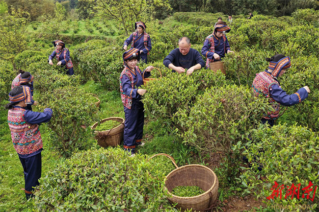 The photo, taken on April 10, shows tea farmers picking wild tea buds at the Shunhuangshan National Nature Reserve in Hunan Province. The wild tea plants grow in a pristine ecological zone on Shunhuang Mountain, at altitudes ranging from 600 to 1,800 meters. This zone is the largest and best-preserved germplasm resource bank of wild tea plants in the province. In recent years, the local authority has focused on both protection and development, striving to transform ecological advantages into industrial strengths. Through standardized harvesting and brand building, more than 3,000 farmer households have seen their incomes rise, with an average annual increase of over 8,000 CNY per household. A new path that harmonizes ecological conservation with rural revitalization has taken shape. (Photo/Yan Yuebin and Zhu Jubin)